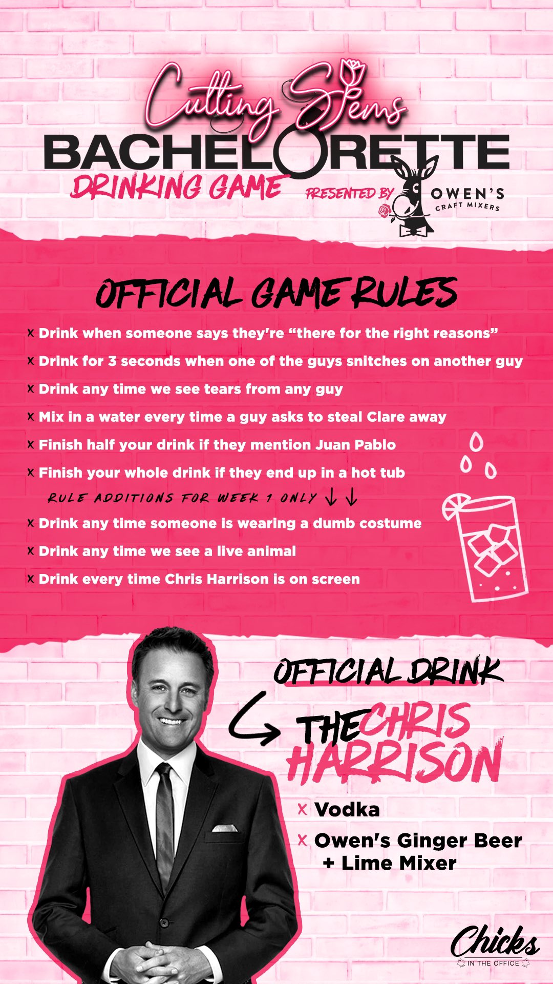 Ria On Twitter Official Cutting Stems Bachelorette Drinking Game For Tonight Go Get Your Owensmixers So You Can Be Apart Of The Fun Https T Co P6xqfz2ses Twitter